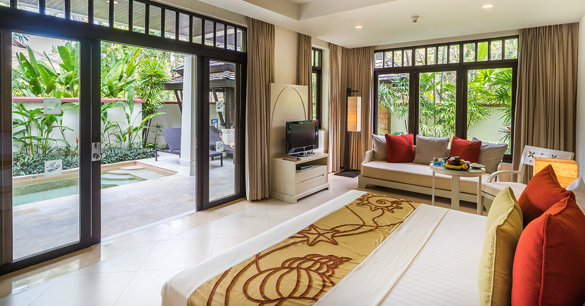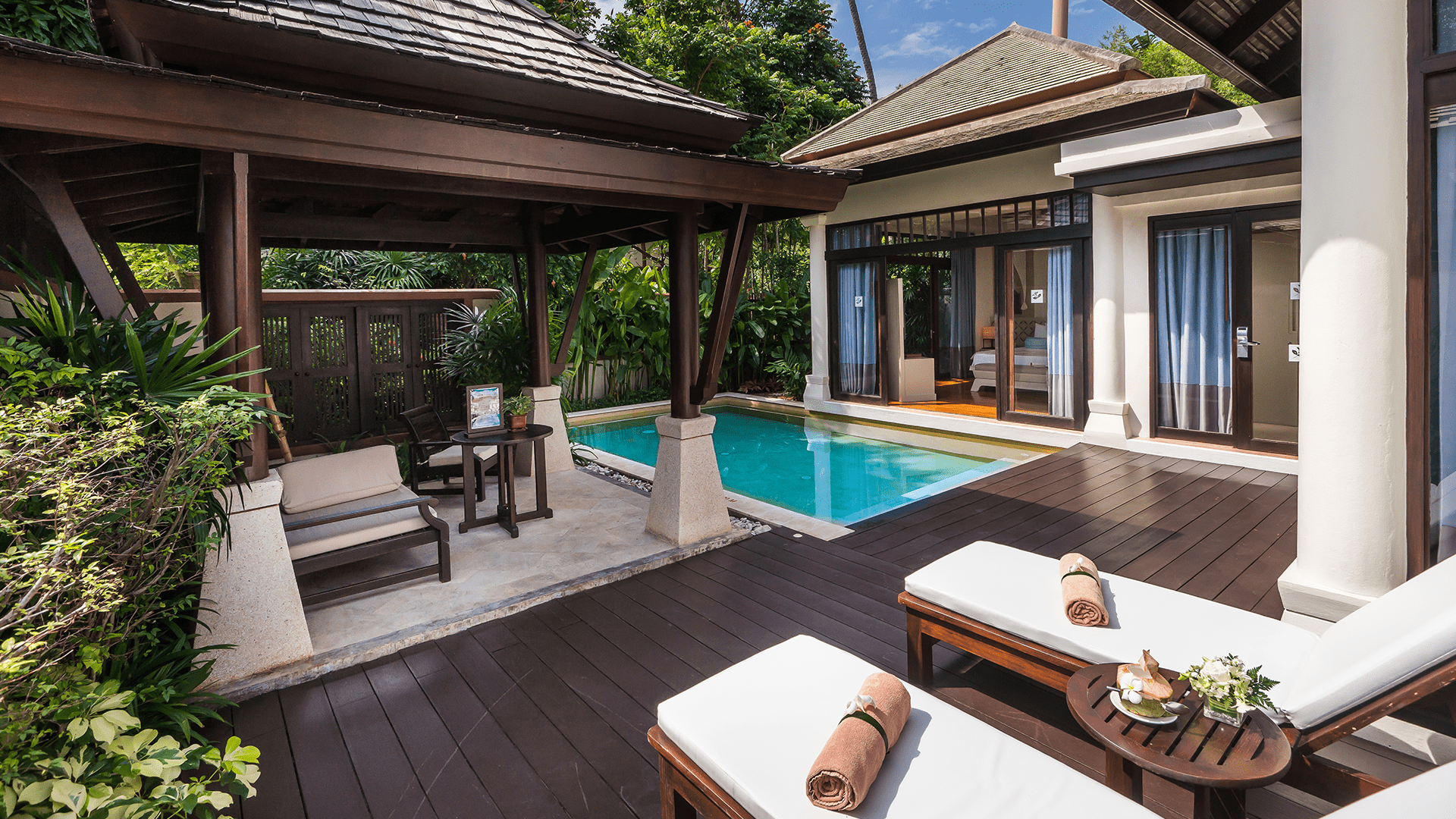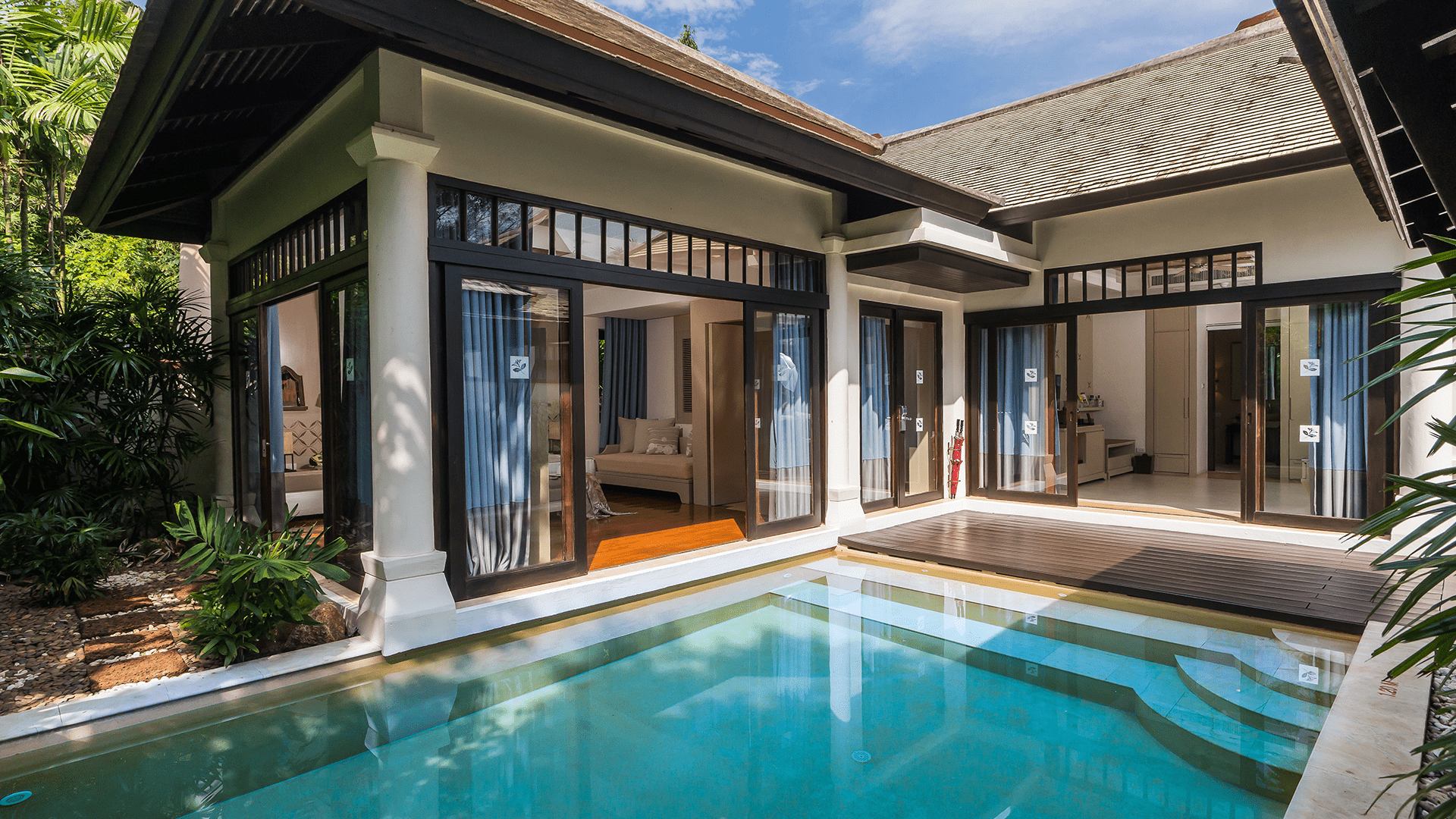 - Features: Private plunge pool set in a tropical garden courtyard and a private sala