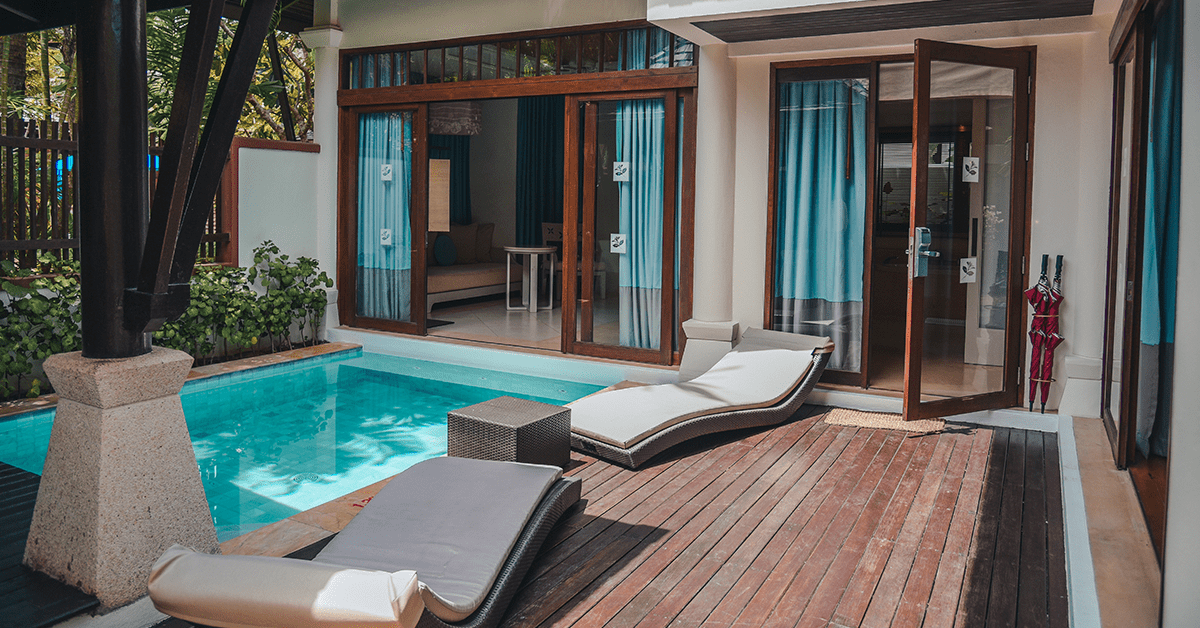 - Features: One‑bedroom villa with a private pool, outdoor sun deck and sala